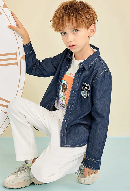 牢固又耐磨的牛仔衬衫,时尚圈里的经典单品。无论是单穿还是搭配T恤,效果都很Nice,深受各路时尚icon喜爱,能装扮出萌童的各种潮流形象。