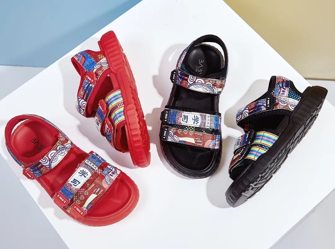 在童鞋中,经典的条带凉鞋将会以更多的不同组合方式所呈现,2020夏季条带组合形式、织带配色以及扣饰等方面将成为一个突破点。