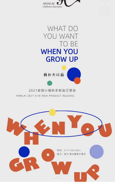 焕发色彩,闪耀童年。2021年3月17日至3月20日,安黎小镇将在浙江嘉兴富悦大酒店隆重举行2021秋/冬新品订货会!在此,诚挚邀请各地好友莅临现场,一同欣赏时尚盛宴,探讨潮流角度,共享美好未来!
