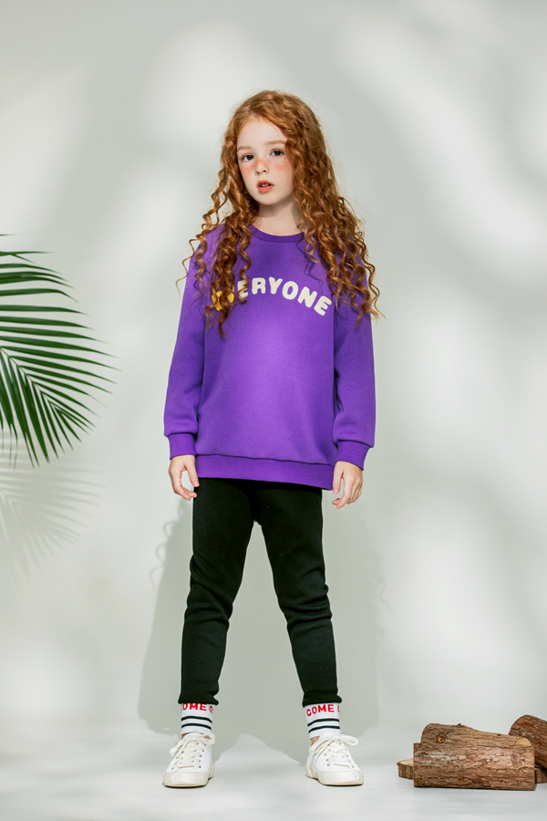 想要看起来简约又很个性的话可以选择这款紫色卫衣的搭配,紫色的颜色个性时尚,女孩子穿非常好看,英文字母的设计很是时尚,搭配一件黑色直筒裤,搭配一双小白鞋,整体的造型个性又很好看,这样的穿搭是很适合秋季穿的哦。