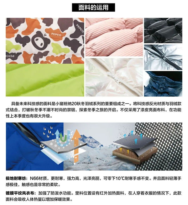 因疫情长时间的居家生活,让人们产生更多对于居家生活的反思,在空调受限制时,人们在追求时尚同时也更注重于保暖,在此风向下能适应不同生活场景的羽绒款式,受到更多关注。轻便羽绒服、超保暖羽绒服、各种缝纫线款式等将紧跟时尚风向标,小猪班纳焕新2020秋冬羽绒服的时尚体验。