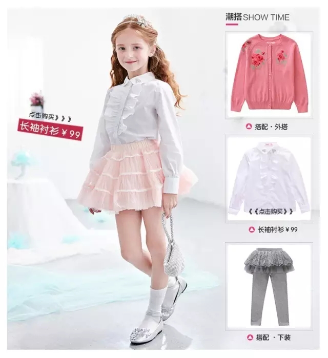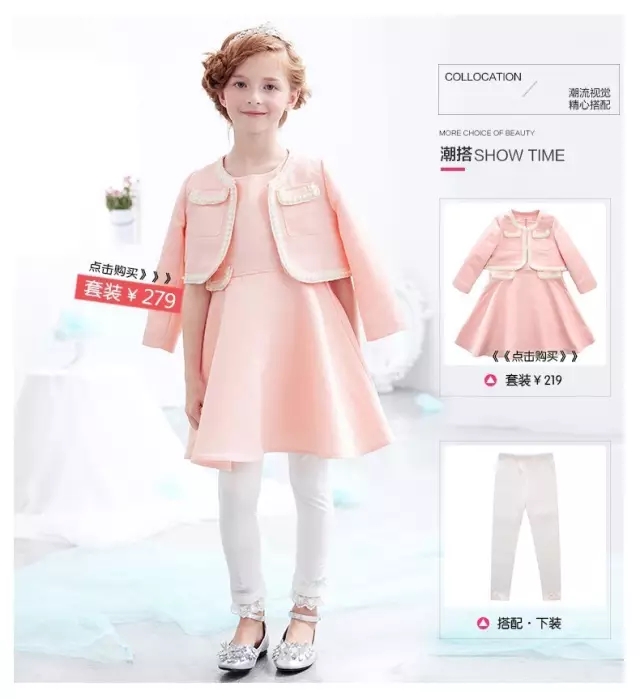 优雅白珍珠点缀粉色公主裙,蕾丝花边打底裤的完美搭配,衬托小公主的优雅身姿。