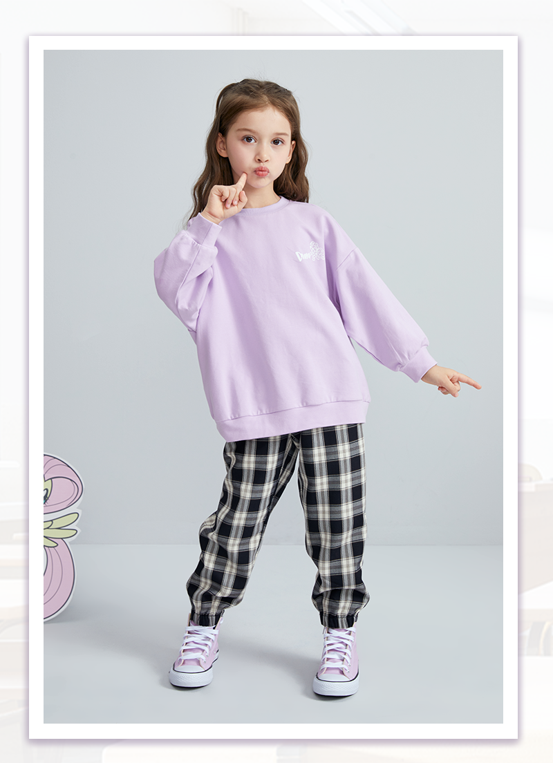 小宽松卫衣搭配休闲格纹长裤