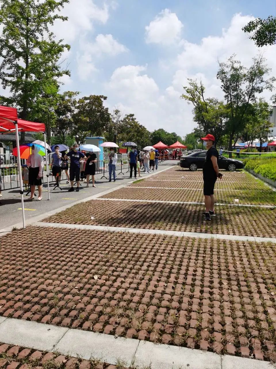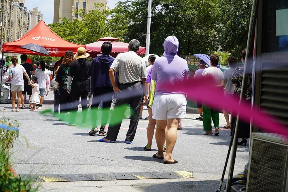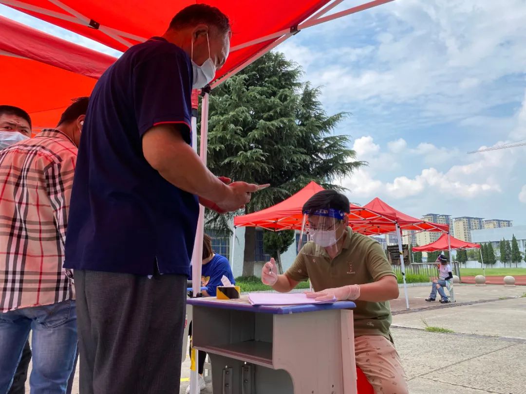 一个支部,就是一个堡垒!在采样现场,志愿者们充分发挥防控战斗堡垒的先锋模范作用,他们忍耐着严密高温,积极引导群众有序排队,检查两码,门口测温。