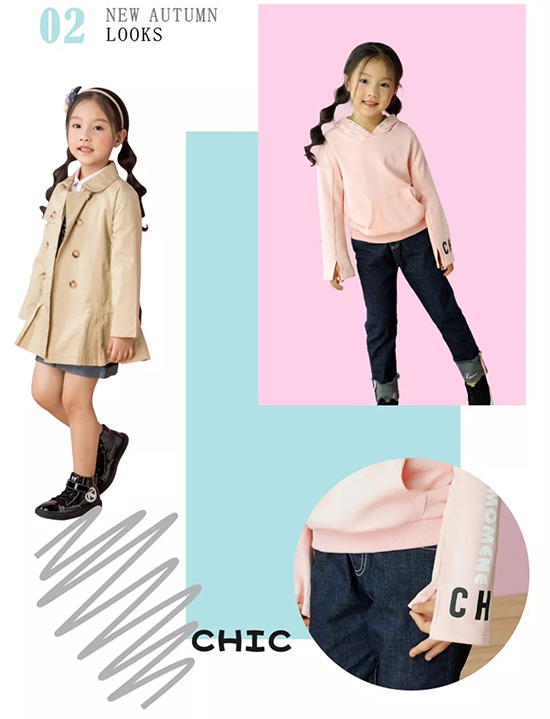LOOK2 : 一款别致的连帽卫衣,流行喇叭袖开叉设计是款式亮点,搭配简约的牛仔卷边裤,潮流STLYE,经典的卡其风衣是宝妈们秋季的必败单品。