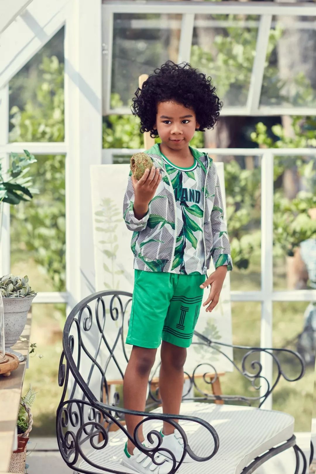 能够将红色与绿色搭配得如此时尚不俗气,可见设计师是蛮有实力的。这条连衣裙从上至下都是红绿相配,像一池跳跃的音符,欢快地流淌在白色底蕴内。略微泛白的粉色小外搭设计非常简约,却出乎意料的搭配出宝妈们想要的那份恬淡与和谐,卷发微微散开,戴一个与裙子色彩一致的发夹,轻轻松松美到家。