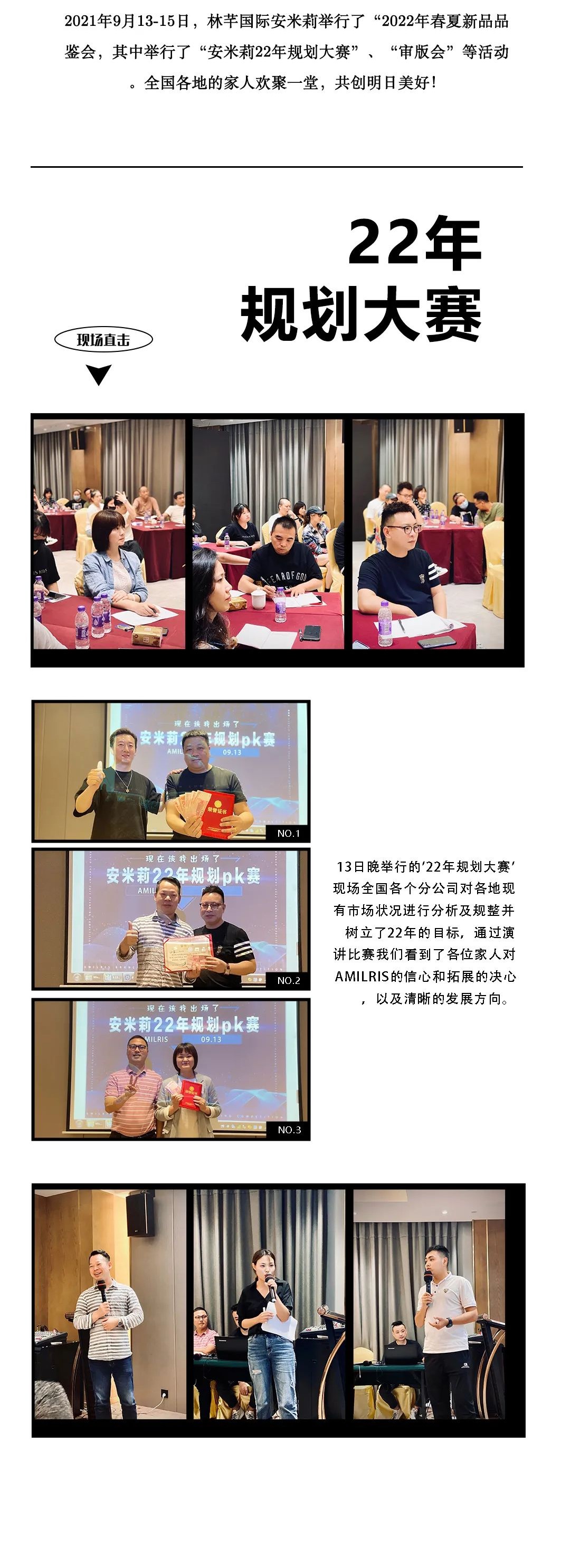 短短三天时间,全国家人们齐聚,为接下去2022年产品记公司发展都提出了积极有效的宝贵建议,为推进品牌发展,打造安米莉团队,打造标杆市场做出了宝贵的意见。
