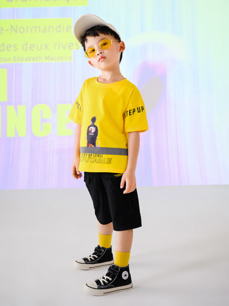 灿烂的黄色,让宝贝走到哪里都吸睛亮眼,宽松设计,让宝贝尽显夏日清凉;背影的印花图案,时尚潮流;衣尾及袖口的字母设计,增添衣服的层次感;搭配与衣服相呼的墨镜与袜子,视觉吸睛,做个帅气小潮童吧!