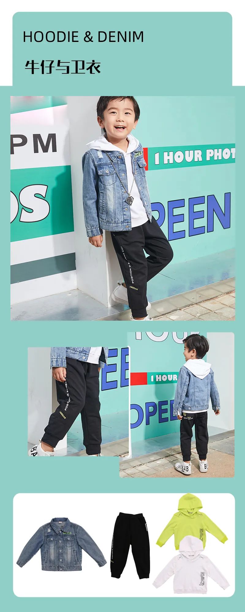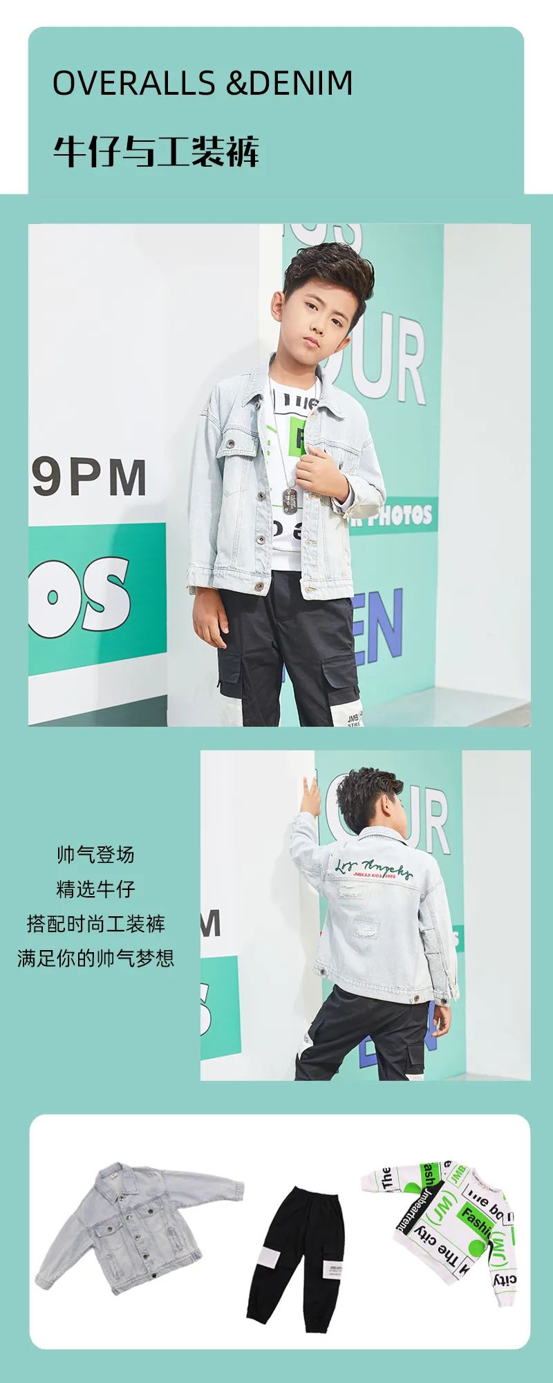 为了赋予潮童心中挚爱的实用单品,牛仔衣更多能量,质朴利落的版型设计,贴合的剪裁结构,在细节上带来舒适性与时尚感。