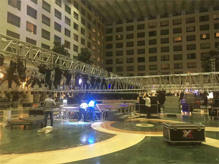 经过现场工作人员的忙碌准备,今天华丽的舞台就将正式亮相,期待杰米熊家人们拥有一个美好的体验!